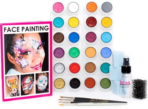 Dit Schmink pakket E bevat alles wat je nodig hebt als beginnend schminker. Met dit schminkpakket heb je een prima basis met 24 kleuren Grimas Water Make-up waarmee je kan schminken. Grimas Water Make-up is een ongeparfumeerde en glutenvrije watermake-up, bedoeld voor gezichts- en lichaamsbeschildering. De schmink kleuren van Grimas zijn onderling mengbaar. De schmink van Grimas mag op de slijmvliezen en rondom de ogen gebruikt worden en voldoet aan de Europese cosmetica wetgeving.