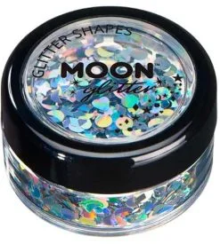 De Holographic Glitter Shapes van Moon Creation reflecteren een regenboog aan kleuren wanneer ze door licht worden geraakt.