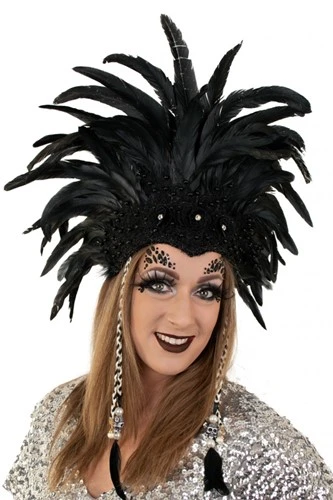 Met deze veren hoofdtooi maak jij je carnaval of festival outfit helemaal compleet. De verentooi is gemaakt op een brede band voorzien van elastiek, hij past dus altijd!