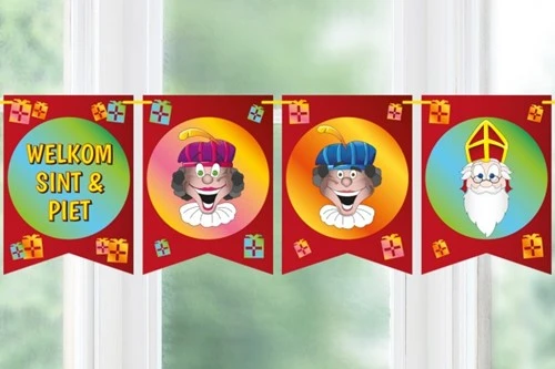 Deze kleurrijke sinterklaas vlaggenlijn heeft vaandels met vrolijke illustraties in het Sinterklaas thema.