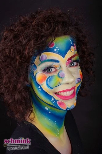 Omdat verschillende kleuren een kleurzweem kunnen achterlaten adviseren wij om altijd te starten met een cake make-up als onderlaag. Je kan de splitcake schmink aanbrengen met een breed penseel of een spons. Als je met een breed penseel werkt maak je deze vochtig en beweeg je deze heen en weer in het potje totdat er voldoende schmink aan het penseel zit. Als de haren van het schminkpenseel volledig zijn gekleurd dan kan je hem gebruiken.
