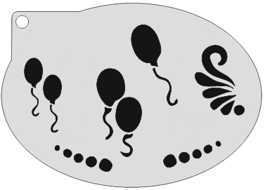 Met dit schminksjabloon schmink je snel en eenvoudig een mooi patroon met ballonnen, stippen en krullen.