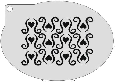 Met dit schminksjabloon schmink je snel en eenvoudig een patroon van hartjes en krullen.