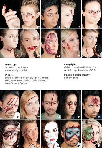 In het door Schmink Specialist gemaakte Special make-up boek staan 20 stap voor stap voorbeelden van verwondingen en Special make-up voorbeelden.