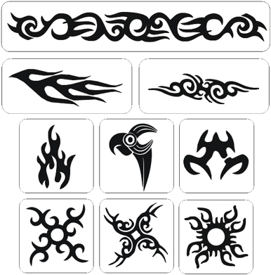 Met deze in de tribal glittertattoo sjablonen maakt u heel eenvoudig een leuke glittertatoeage van een tribal afbeelding.