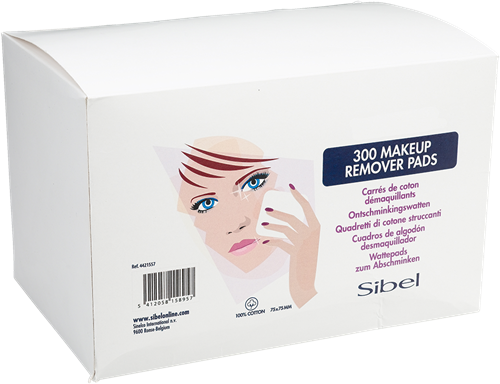 Doos met 300 vierkante wattenschijfjes voor het verwijderen van make-up.