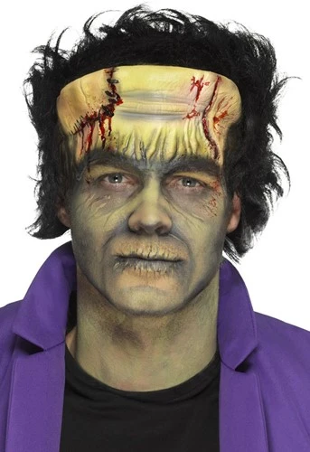 Bepaal eerst waar je de Prothese wilt plaatsen. Houd de prothese tegen de huid en dep met een sponsje met transparant poeder over de randen. Op deze manier krijg je een goed beeld waar je de prothese moet plakken. Vervolgens breng je een dunne laag huidlijm of mastix extra aan op de huid en op de achterkant van de prothese. Gebruik niet te veel en wees extra voorzichtig rond de ogen en mond. Laat de lijm een beetje drogen voordat je de prothese op de juiste plek aanbrengt.